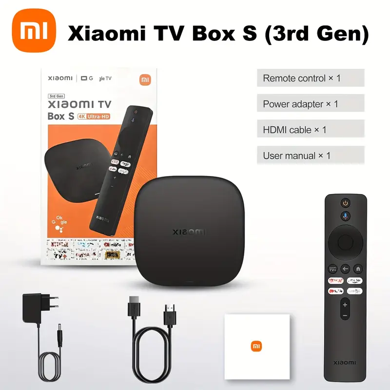 Xiaomi TV Box S (3rd Gen) – 4K UHD – G00G1E TV – 32GB Memory – Do1by Vision & Atm0s – WiFi 6 – HDTV 2.1 – Fast Streaming – Compact and Powerful – Quad-Core( up to 2.5GHz) – RAM 2GB – ROM 32GB – 2.4GHz/ 5GHz – BT 5.2 -Weight 91.2g – EU Power adapter -LM – Black, Smart Home Device, Home Entertainment, Sleek Design, Portable Media Player, Highperformance Hardware, Durable Build, Streaming Device, Home Theater Lovers, Smart Home Users