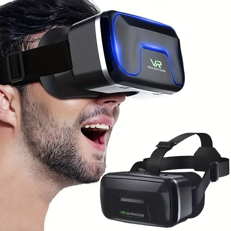Shinecon VR Glasses – Adjustable 3D Headwear, Comfortable Fit, Immersive Visual Experience, Black with Blue Accents, Ideal for Home Entertainment
