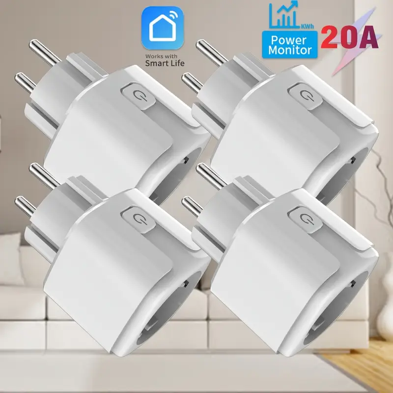 SIXWGH 20A European Plug WiFi Smart Socket with Power Monitoring, Google Home & Alexa Voice Control, Timer/Countdown, Smart Life App Integration, Durable Plastic Design, Home Automation, Sleek Design, Flexible Placement